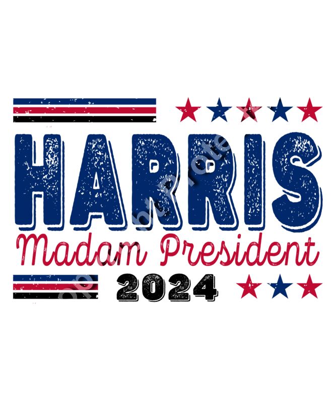 Kamala Harris 2024 Madam President campaign design with stars and stripes motif harris madam p