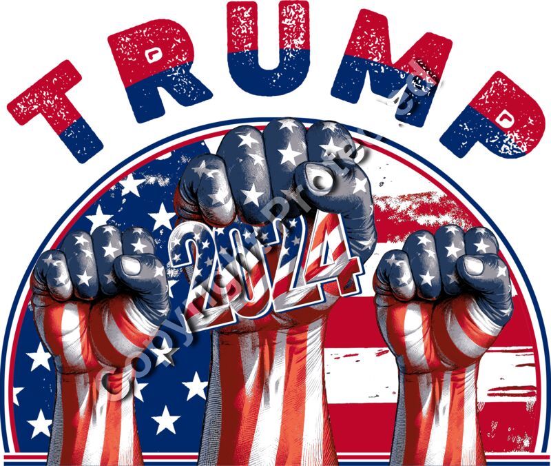 Trump 2024 patriotic fists American flag artwork illustration